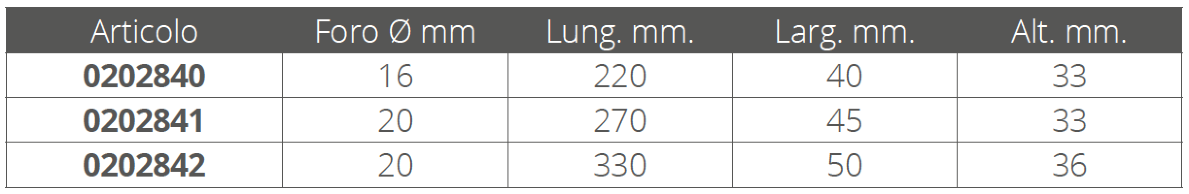 Dim.art. 0202840 poumon. mm 220 x 40 x 33h Ø trou mm.16