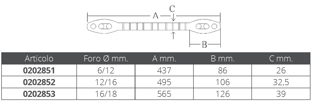 Dim: Art.0202852 poumon. mm 565, trou Ø mm. 16/18
