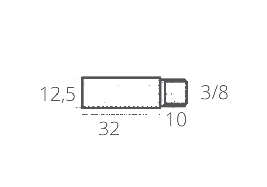 Barotto sombre. Ø mm. 12,5 mm de longueur. 32 filetage 3/8 de longueur. mm. dix