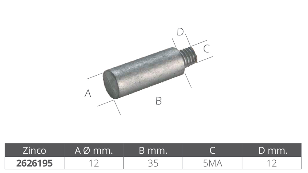 Anode en zinc pour ligne d'arbre d'hélice Riva