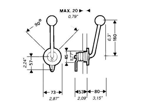 Commande à levier en acier B35, application murale pour commande d'accélérateur ou de boîte de vitesses.Utilisez les câbles C2 - C7 - C8 - Mach Zero - C22- 33C.