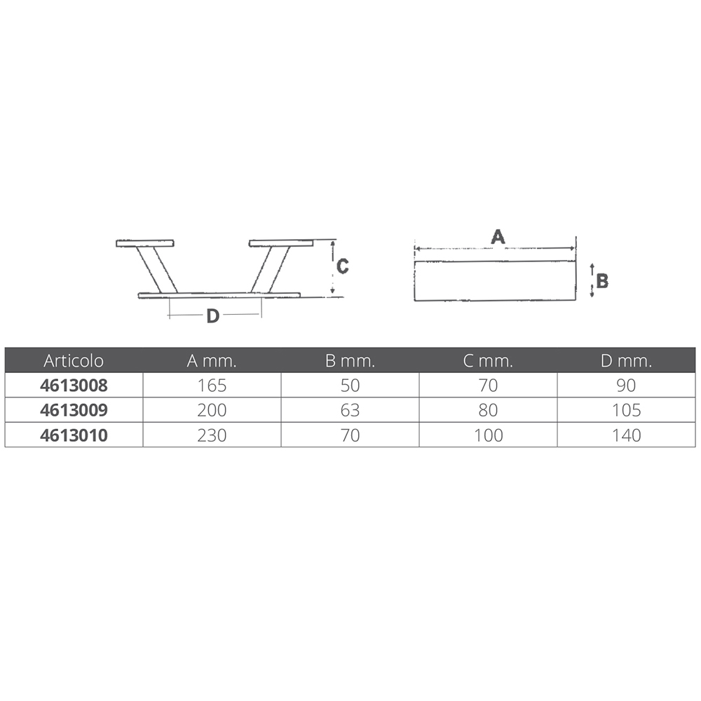Dim. Art. 4613008 longueur 165 mm x largeur 50 mm x 50 h mm