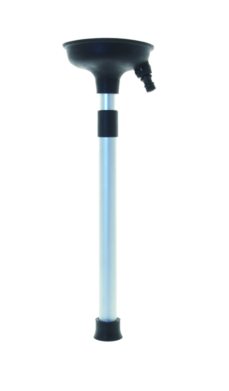 Botte en caoutchouc Ø mm. 140, avec raccordement rapide à l'eau (type jardinage) pour le lavage du moteur in-bord. Tube télescopique mm. 460 à mm. 770 alliage léger, pour s'adapter aux différentes hauteurs depuis le fond de la bécasse