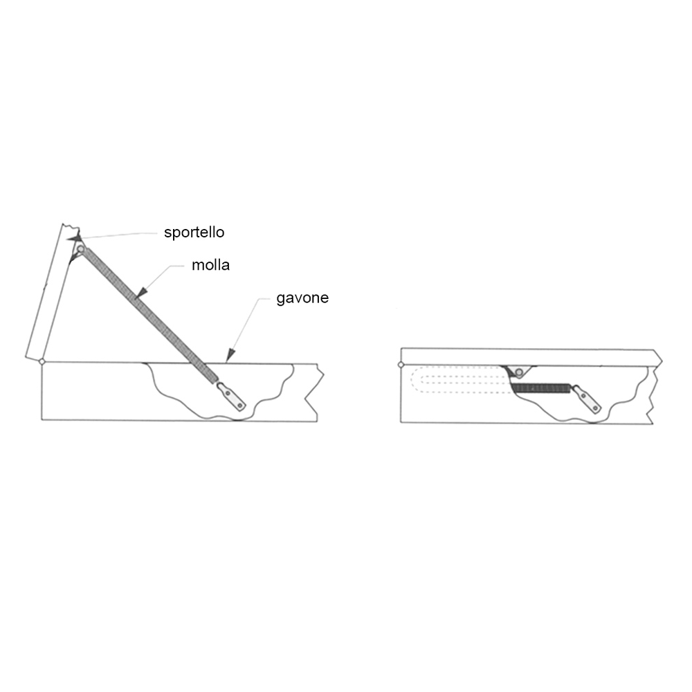 Boussole à ressort en acier inoxydable pour la fermeture des portes, dim. mm Ø mm. 11 mm de longueur. 210