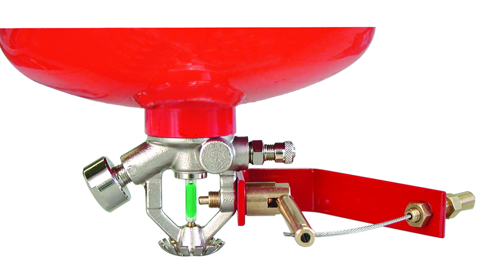 Télécommande manuelle pour le fonctionnement de l'extincteur composée de : actionneur mécanique, câble en acier avec gaine flexible de 5 m et niche en laiton peint en rouge pour le tableau de bord.