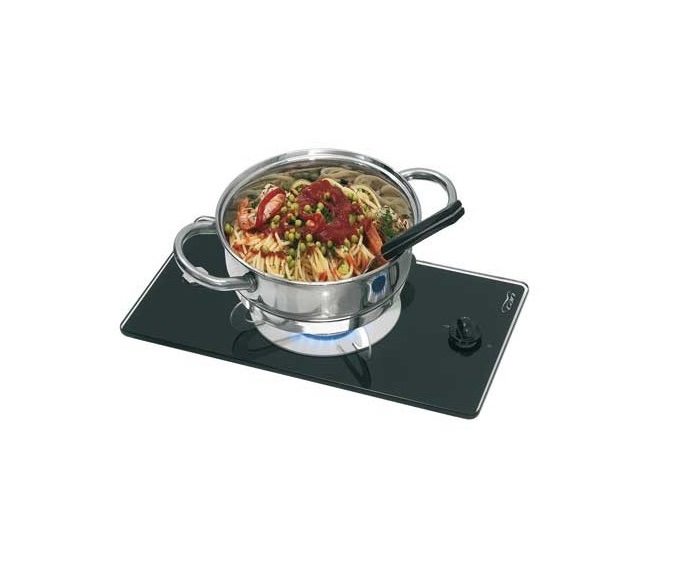 Cuisinière à 1 brûleur intégrée avec dessus en verre trempé et dispositifs de sécurité thermique.