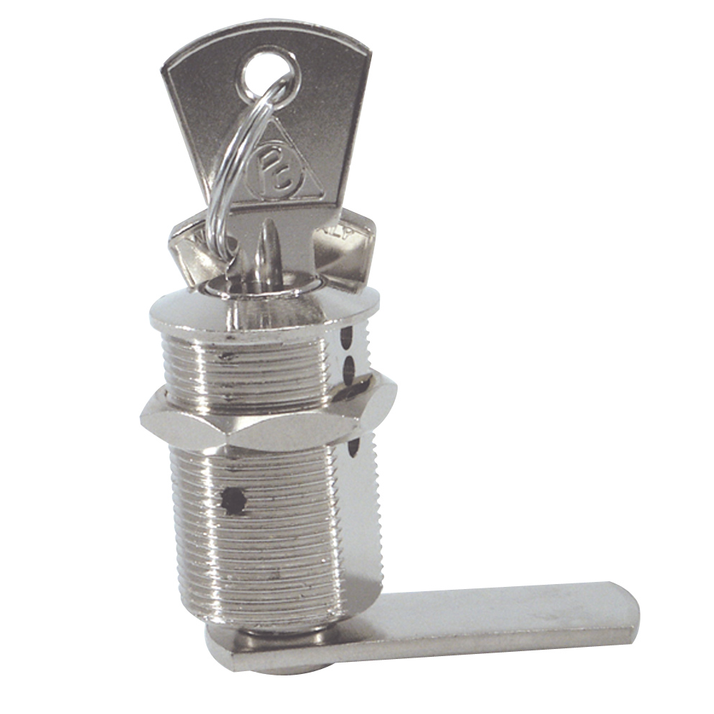 Cylindre complet avec clé entièrement en laiton chromé.La clé peut être extraite aussi bien en position fermée qu'ouverte