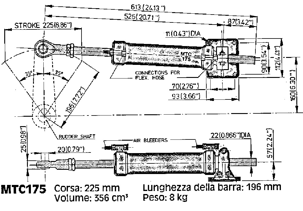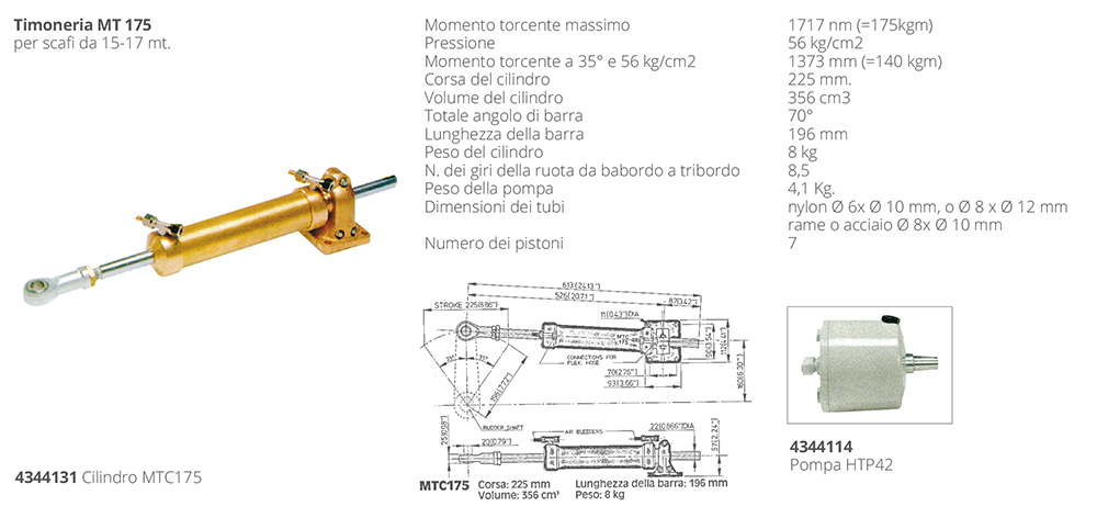 Cylindre MT 175 pour système de direction hydraulique Vetus pour moteurs in-bord pour coques de 15 à 17 mètres.
