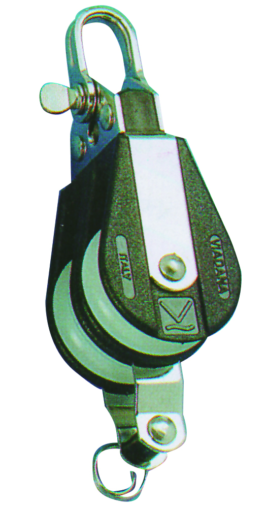 Poulie double à ringot à billes, art. 7878039 charge de travail 300 kg charge de rupture 800 kg, art. 7878040 charge de travail 370 kg charge de rupture 950 kg, art. 7878041 charge de travail 580 kg charge de rupture 1450 kg