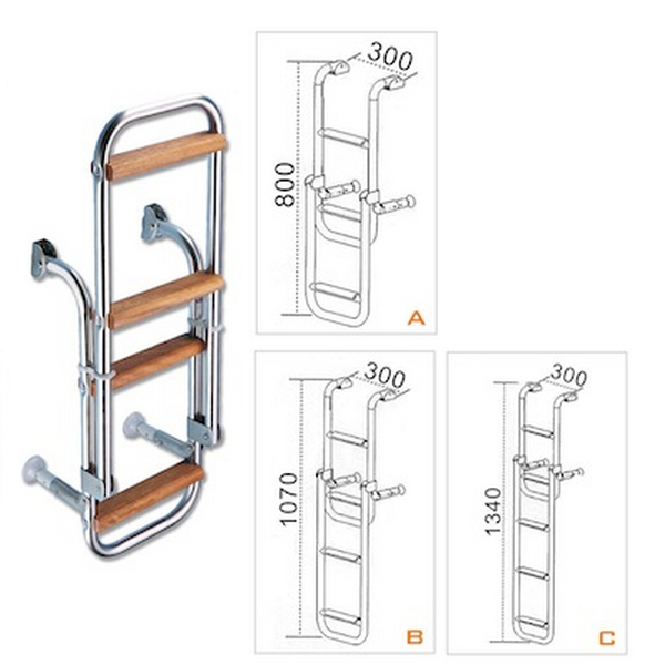 Échelle en acier inoxydable Aisi 316 avec marches en bois antidérapantes pour le tableau arrière des bateaux à voile ou à moteur