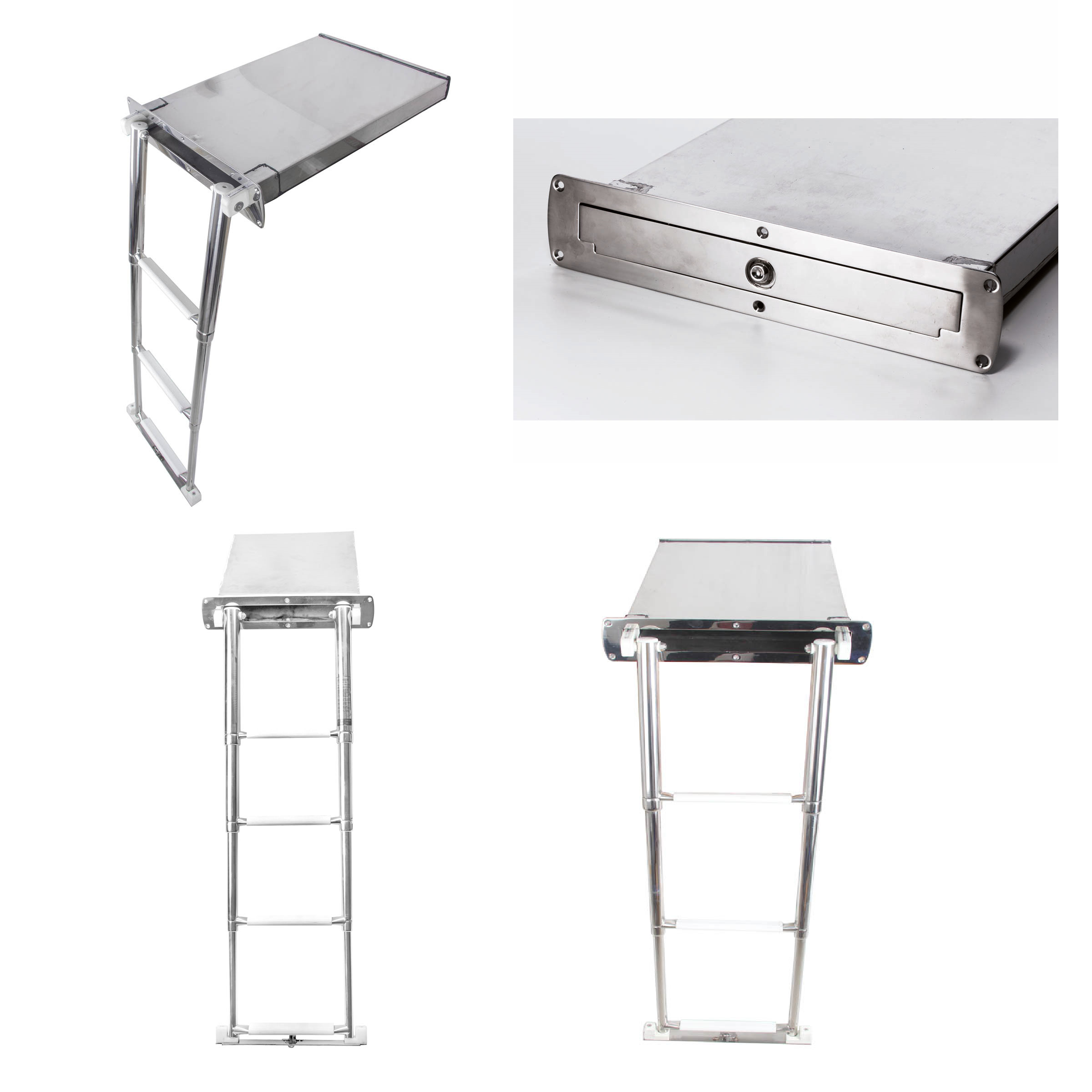 Échelle télescopique rétractable enfermée dans un boîtier en acier inoxydable Aisi 316