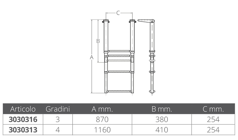 Echelle télescop. escamot standard AISI316 3marche