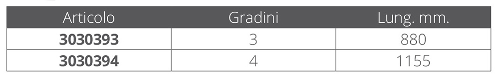 3030394 Marches n.4, Longueur ouverte 1155 mm, Taille de la boîte mm Longueur. x largeur x H 482 x 337 x 47, Dim. Face avant 390 x 80 mm