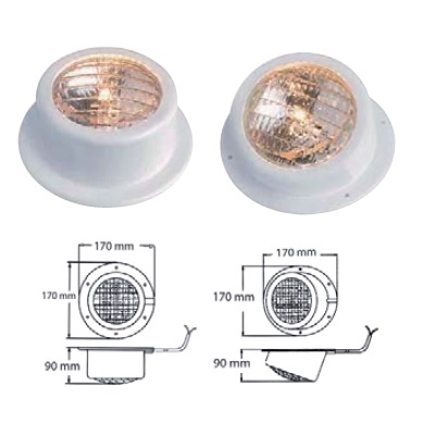 Complet avec ampoule. Ils sont fixés sous la plateforme pour éclairer la surface de l'eau. Déjà complet avec 1,20 m de câble d'alimentation.