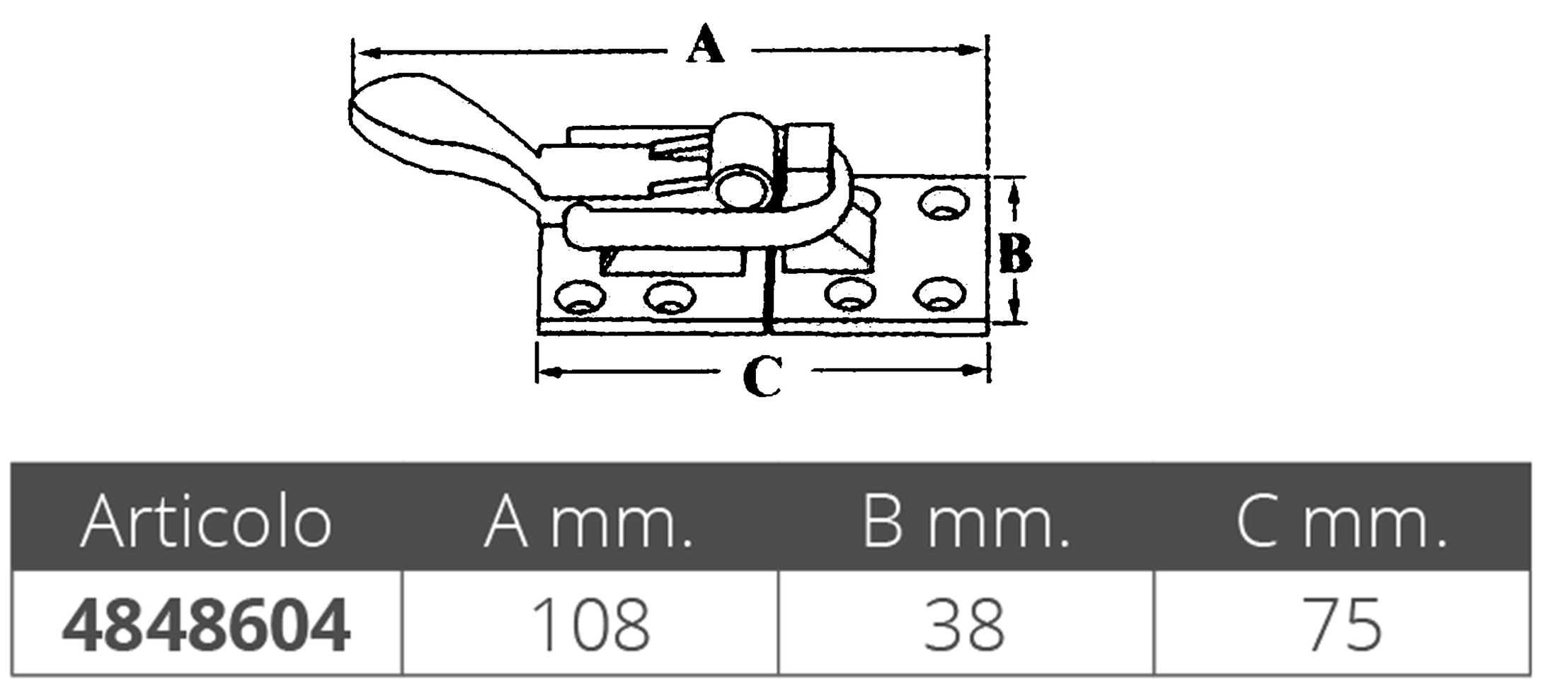 Fermeture plate en acier inoxydable AISI 316. Dim. 108 x 38 mm
