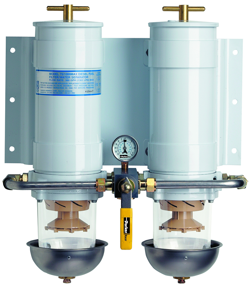 Filtres marins Racor Turbines eau / diesel La série Racor TURBINE, sépare les impuretés en suspension présentes dans le diesel comme un filtre diesel commun, mais à cette fonction il ajoute celle d'éliminer l'eau qui est très souvent présente dans le diesel, améliorant ainsi la consommation de carburant, réduisant les gaz d'échappement polluants gaz et préservant la durée de vie du filtre lui-même ainsi que celle de la pompe et des injecteurs homologués RINa. et US COAST GUARD approuvé. Complet avec raccords M/F.