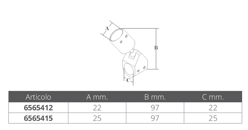 SUPPORTS ARTICULÉS EN ACIER INOXYDABLE POUR TUBE Ø MM.22