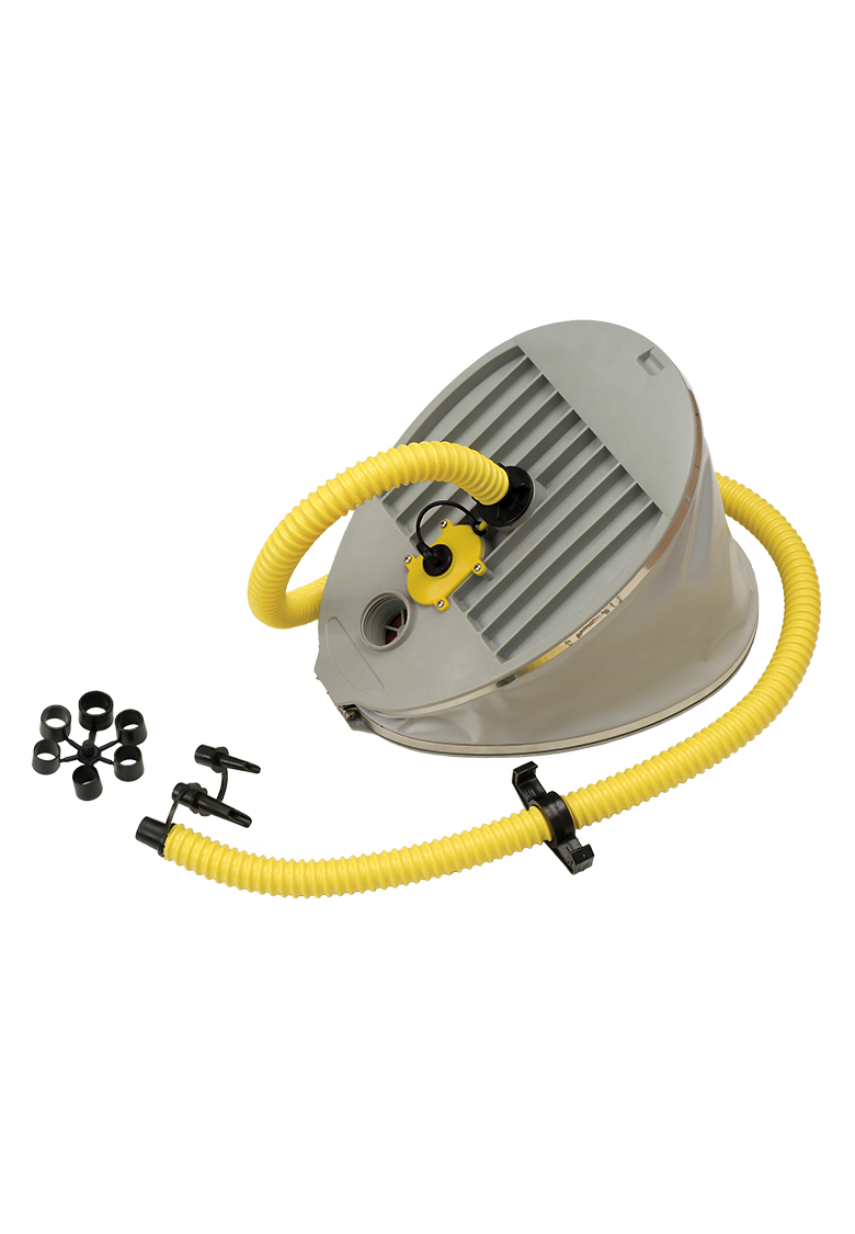 Pour gonfler le fond, effectuez la même opération que pour les boyaux, puis retirez le bouchon. Automatiquement, la pompe n'utilise que la plus petite chambre, vous permettant d'atteindre sans effort une pression de 800 mbar (11,6 psi).