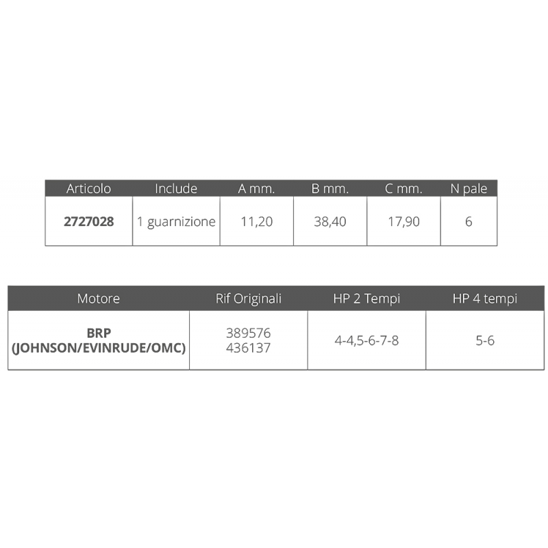 Réf 389576 pour moteurs 2T 4-4,5-6-7-8 CV 4T 5-6, dim. Ø intérieur 11,2 mm Ø extérieur 38,4 mm épaisseur 17,9 mm, n° 6 lames