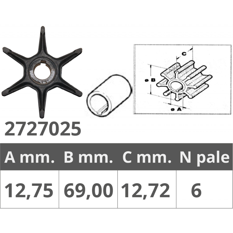 Réf 375638/775518 pour moteurs 2T 10-15-18-20-25 CV, dim. Ø intérieur 12,7 mm Ø extérieur 69 mm épaisseur 12,8 mm, n° 6 lames