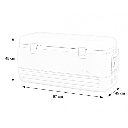 Une grande glacière d'Igloo, leader mondial dans la production de glacières marines hautes performances. La glacière Igloo Polar 120 peut contenir de la nourriture et des boissons, idéale pour garder les boissons, les appâts ou le poisson au froid, à la fois sur le bateau et en camping.