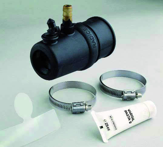 Joints axiaux RMTA en caoutchouc élastomère autoserrant 'CR'. Il remplace les presse-étoupes traditionnels pour les arbres d'hélice métriques. Equipé de raccord de tuyau pour l'hydrolubrification de l'essieu, raccord pour insérer la graisse, colliers, graisse et protection pour faciliter le montage.