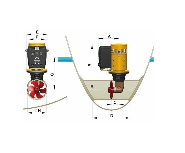 Propulseur d'étrave Vetus 55 Kgf thruster bow thruster kit. Convient pour les bateaux à déplacement jusqu'à 8,5 mètres et pour le rabotage des bateaux jusqu'à 12,5 mètres. Il comprend:
