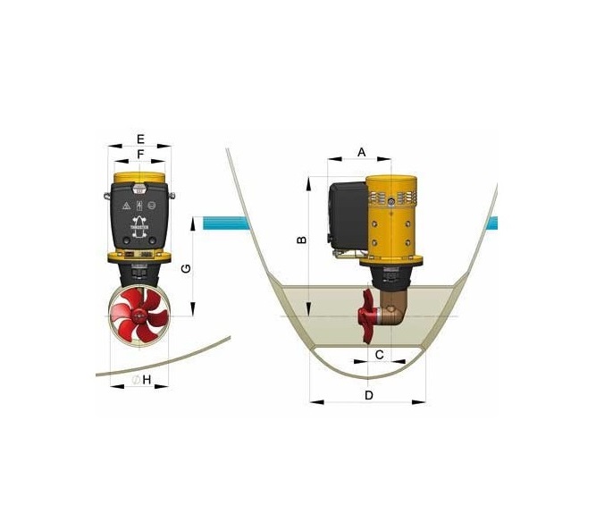 Propulseur d'étrave Vetus 55 Kgf thruster bow thruster kit. Convient pour les bateaux à déplacement jusqu'à 8,5 mètres et pour le rabotage des bateaux jusqu'à 12,5 mètres. Il comprend: