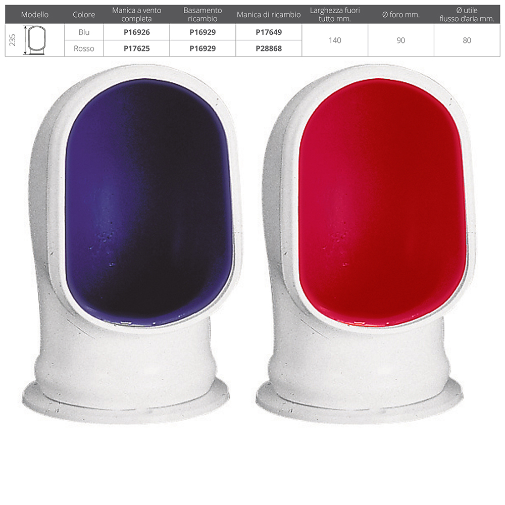Manche à air en PVC bleu avec base en plastique + capuchon de fermeture. Dim.hauteur 235 mm, largeur 140 mm, trou Ø 90 mm.