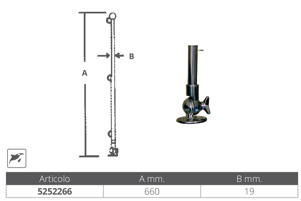 Mât de drapeau pliable en acier inoxydable, complet avec base articulée Ø mm. 30 en acier inoxydable AISI 316, longueur cm. 66 x épaisseur mm. 19