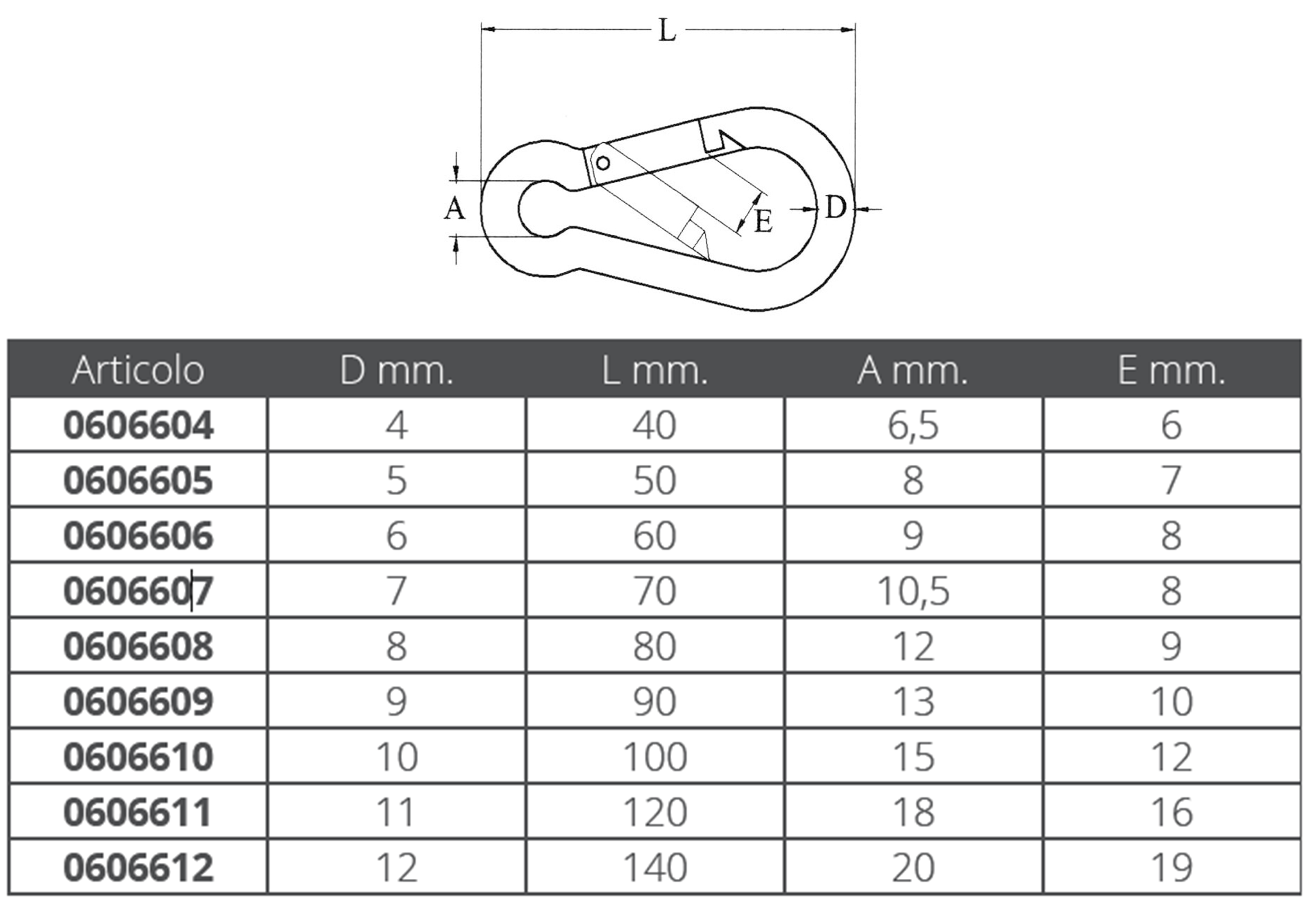 Mousqueton standard en acier inoxydable AISI 316