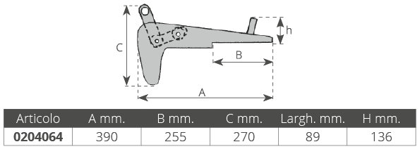 Dim. Longueur mm. 390 fois la largeur. mm 789 surface d'appui mm. 255