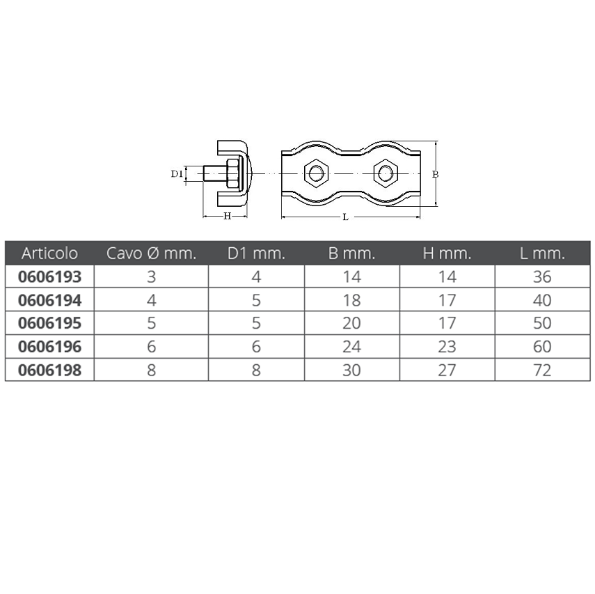 Ridoir avec deux chapes fixes AISI 316 4 mm