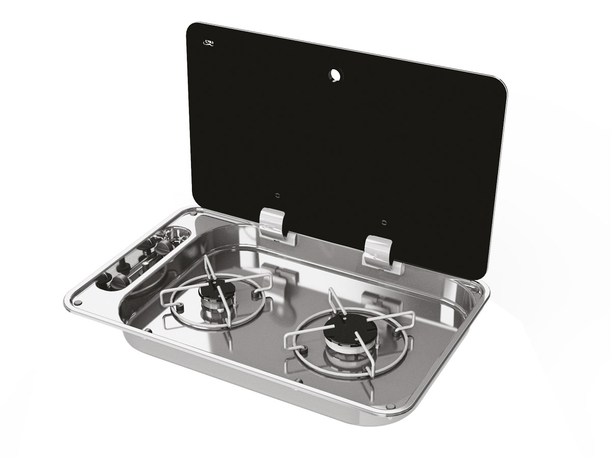 Cuisinière à 2 brûleurs en acier inoxydable avec thermosécurité.