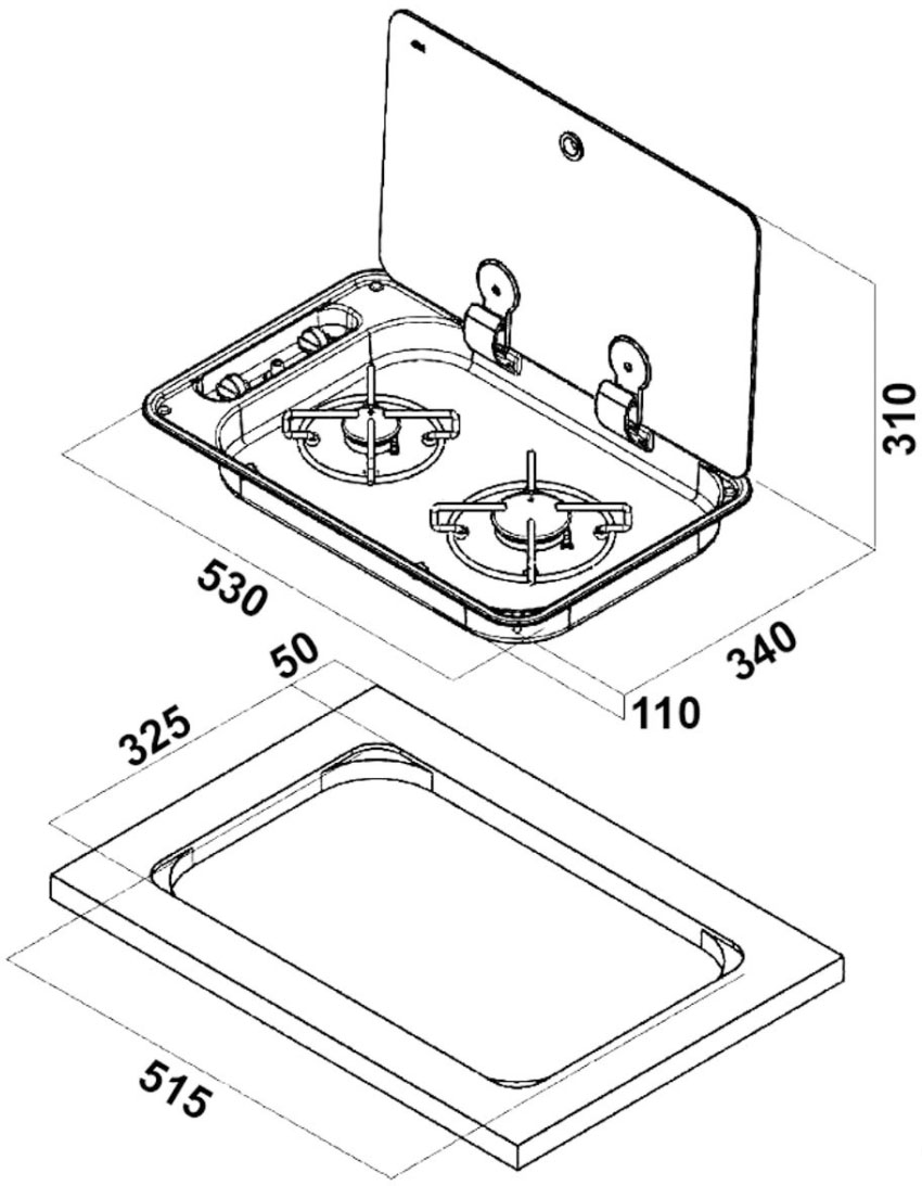 Poêle encastrable à 2 brûleurs