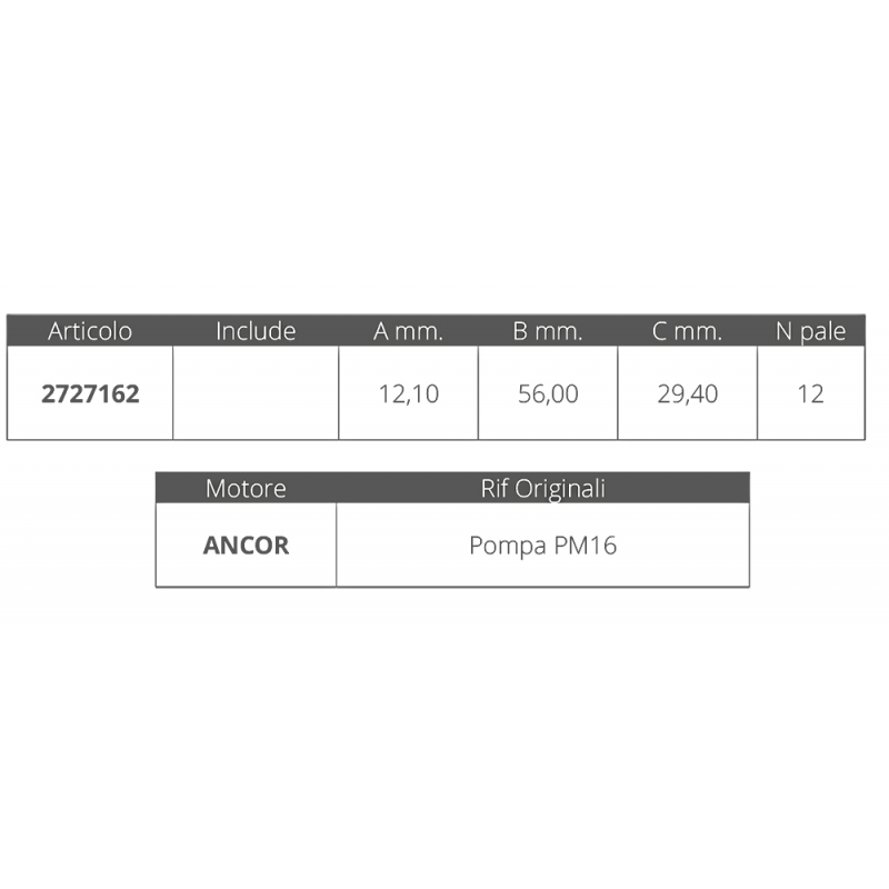 Dim. Ø int.mm. 12,1 Ø extérieur 56 mm épaisseur 29,4 mm, 12 lames