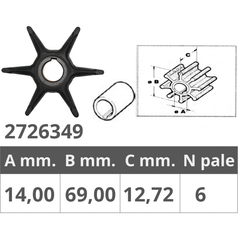 Réf 775519-377178 pour moteurs 2T 9.5-10 cv, dim. Ø int.mm. 14 Ø extérieur 69mm épaisseur 12,8mm, 6 lames