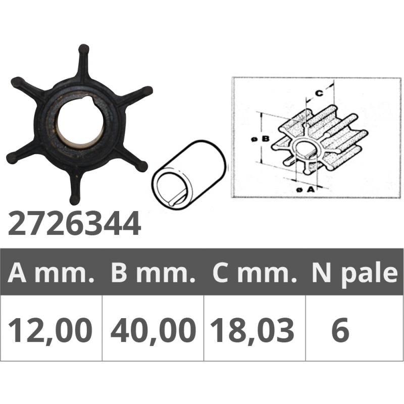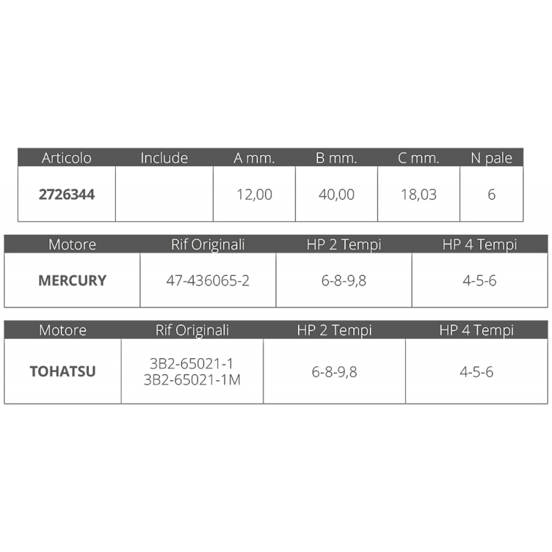 Réf. 3B2-65021-1 pour moteurs 2T 8-6-8-9.8 CV, pour tous les moteurs 4T dim. Ø intérieur 12.12 mm Ø extérieur 40 mm épaisseur 18.03 mm, n° 6 lames