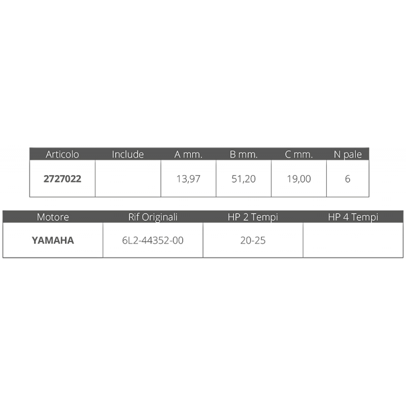 Réf.6L2-44352-00 pour moteurs 2T 20-25 CV, dim. Ø intérieur 14,1 mm Ø extérieur 51 mm épaisseur 19 mm, n° 6 lames