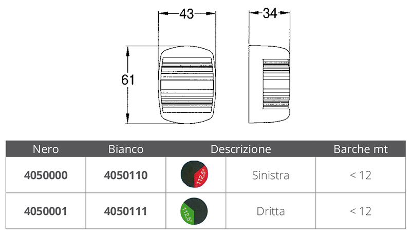 Feu de navigation Utility78 blanc 12V/gauche rouge