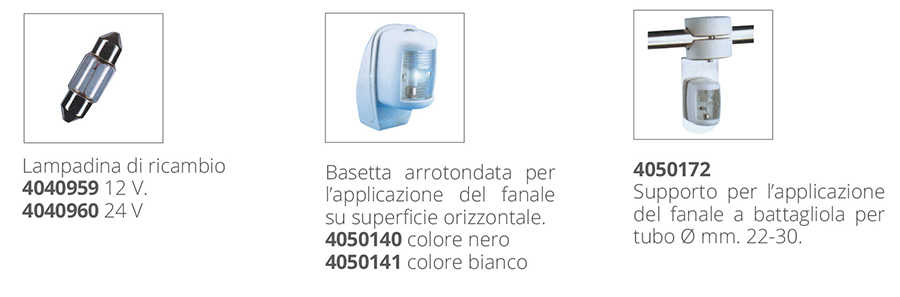 Lampadaires homologués RINa. Classe de protection IP56 en polycarbonate résistant aux UV avec RI.Na. et ampoule 12V