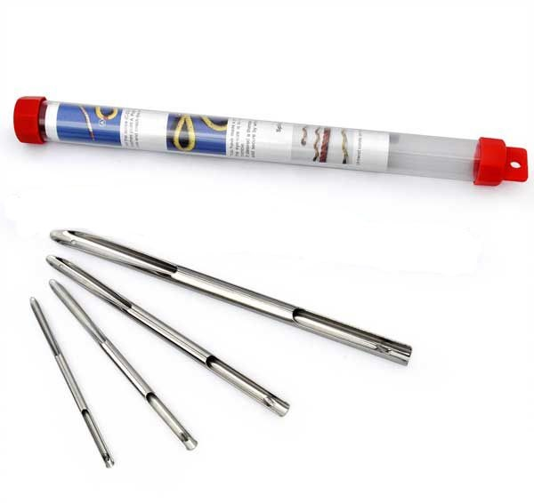 Lot de 4 aiguilles creuses pour épissure en acier inoxydable finement poli de haute qualité, solides et durables sont conçues pour ne pas se déformer. Ils facilitent la réalisation d'épissures sur cordages et drisses également en Dyneema Ø mm. 4 à 10. Très simple d'utilisation, les aiguilles sont livrées avec un manuel qui illustre différentes techniques. Produit breveté.