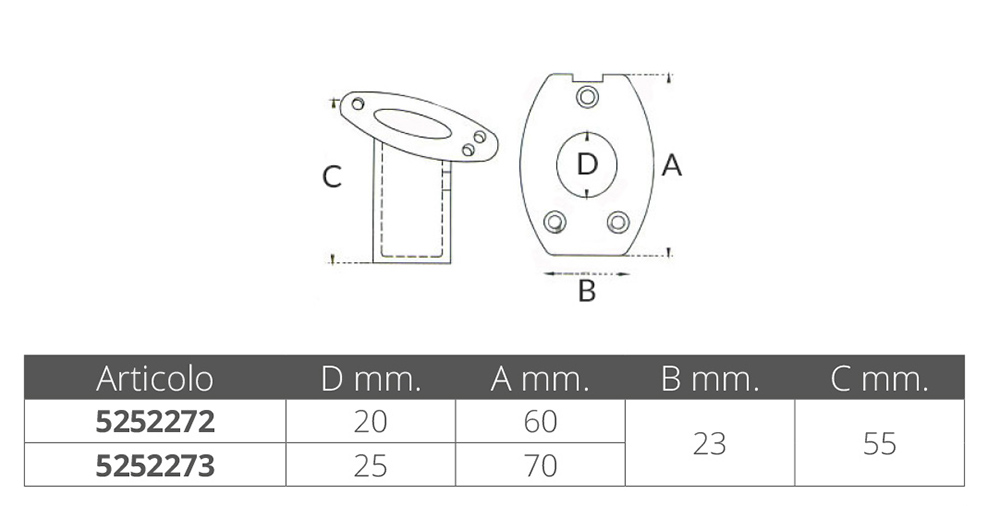 Support mât AISI316 20/25 mm pour tube Ø 25 mm