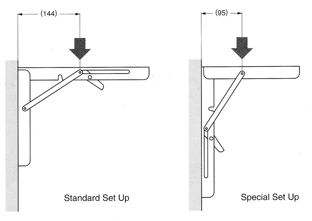Support pliant en acier inoxydable qui permet de rabattre la table Dim. 300x165x25 mm.