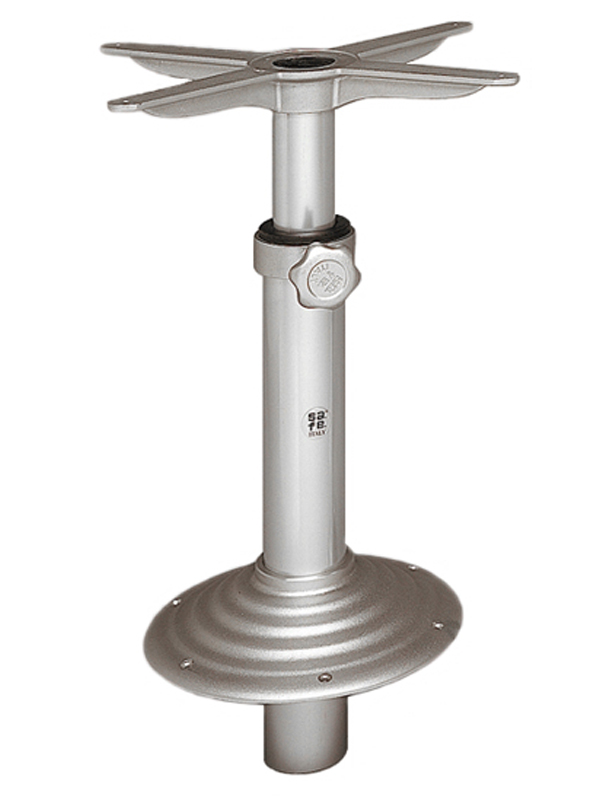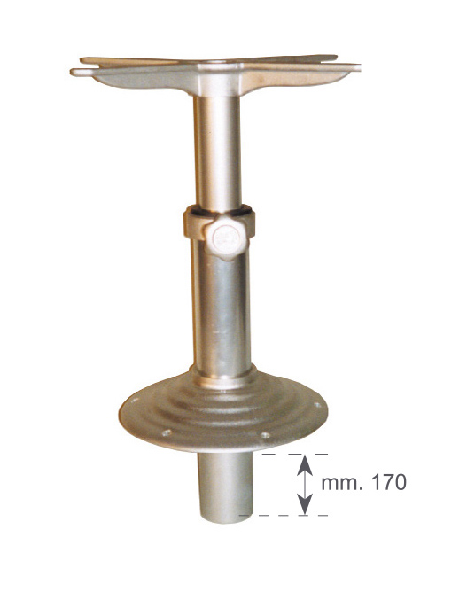 Support d'assise télescopique en LL. base supérieure amovible pivotante à 360 ° Ø mm. 175 base inférieure Ø mm. 270 tube de colonne externe Ø mm. 100, Ø intérieur mm. 80. Hauteur réglable mm. 400/610.