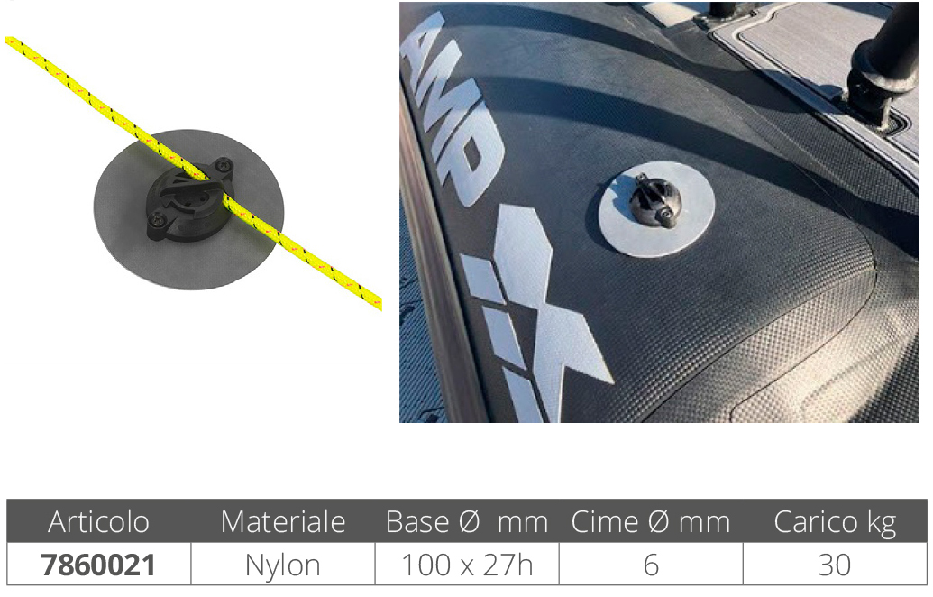 Taquet taquet parfait pour fixer les lignes sur les structures gonflables, équipé d'un taquet rapide monté sur un patch Hypalon, fourni avec un adhésif spécial pour le coller aux tubulaires.