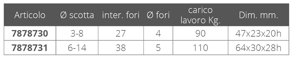 Taquets à mâchoires en fibre de carbone avec sphères, art. 78.78730 pour tôle Ø mm. 3-8, dimensions mm. 47 x 23 x h20 référence 78.78731 pour tôle Ø mm. 5-14, dimensions mm. 64x30xh28
