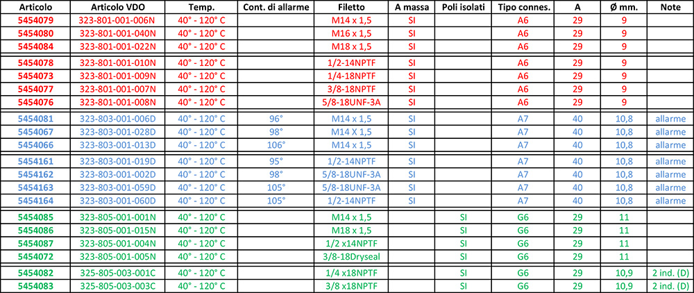 Capteur avec plage de fonctionnement de 40 ° à 120 ° C. Contact de masse sur l'ampoule elle-même. - Article Vdo 323-801-001-006N Unité de mesure